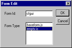 The first step in creating a GUI is to create a form definition. A form definition is stored in a script file just as are all your other definitions.