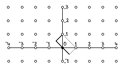 The definition I gave to complex floor was chosen to be compatible with the real floor definition. In particular, the fractional-part function 1|⍵ extends faithfully (see Figure 2). Just as, in the real case, we can say that the result of 1|⍵ lies in the half-open interval [0,1) , in the complex case we can say that its result lies in the half-open area delimited as shown in Figure 2.